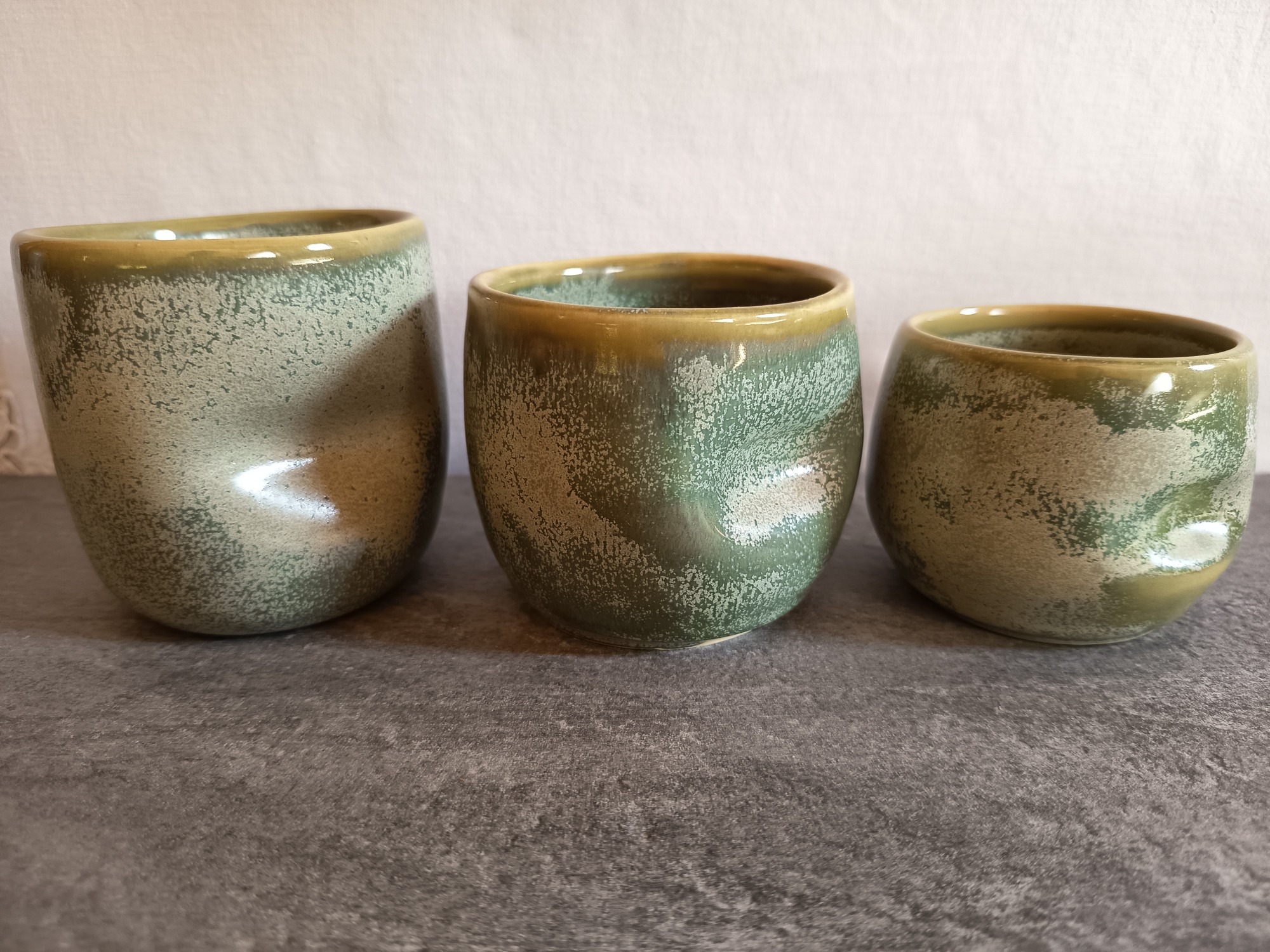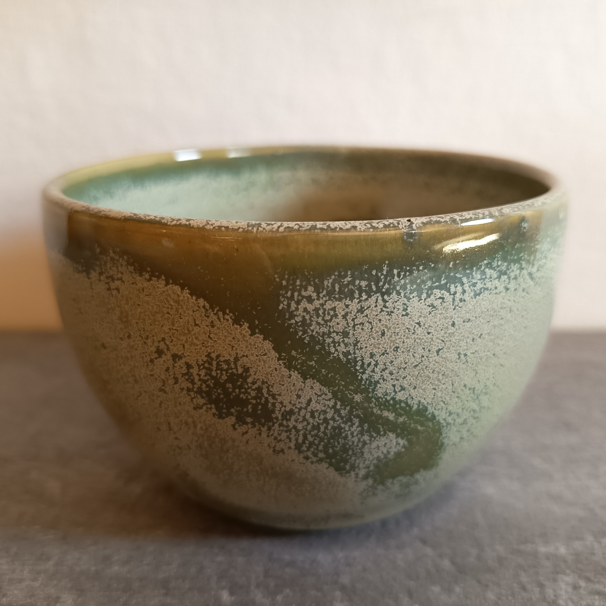 La couleur verte, parsemée de petits points blancs, rappelle une fine couche de neige tombée sur la terre. Bols, tasses, mugs... chaque objet est fait avec douceur et attention.