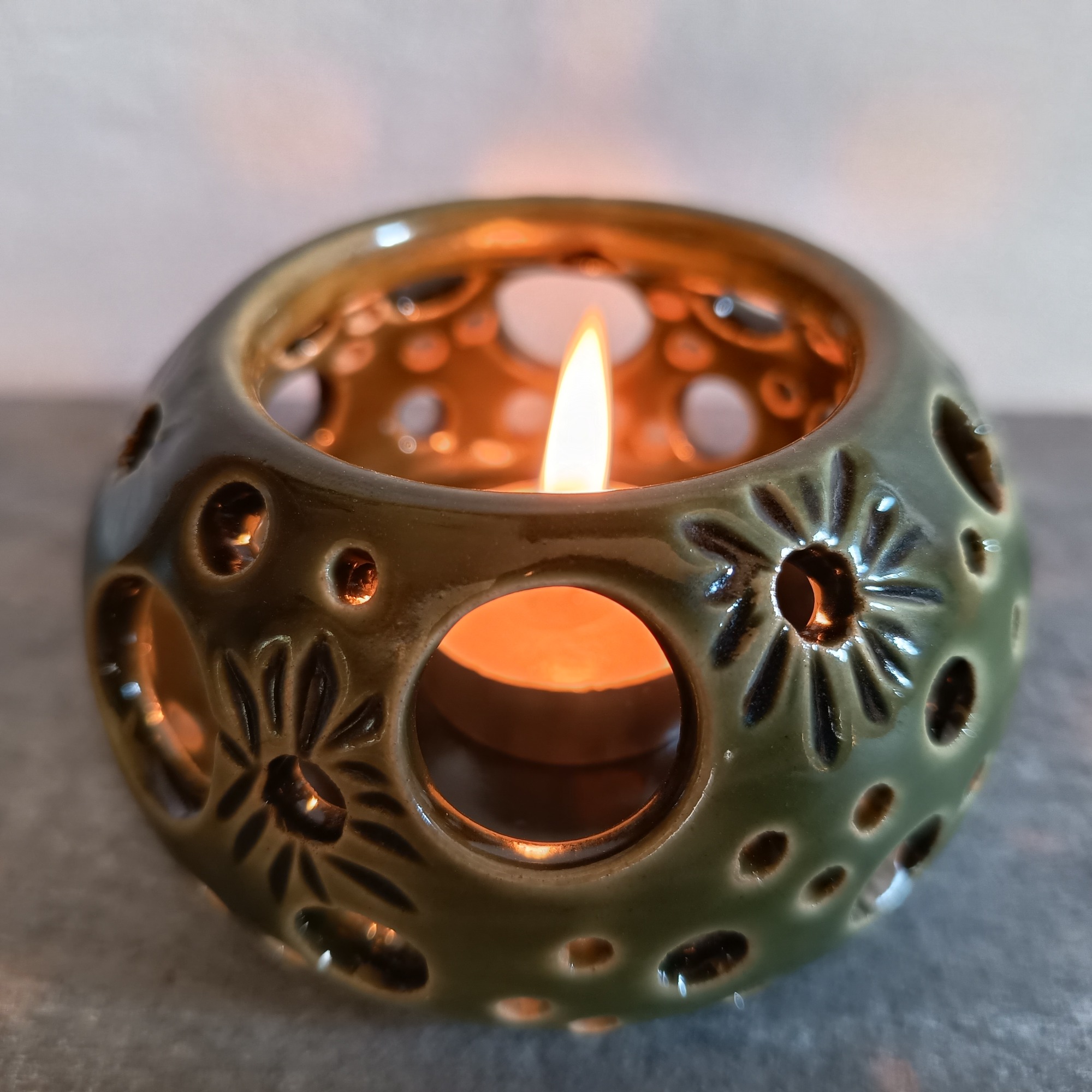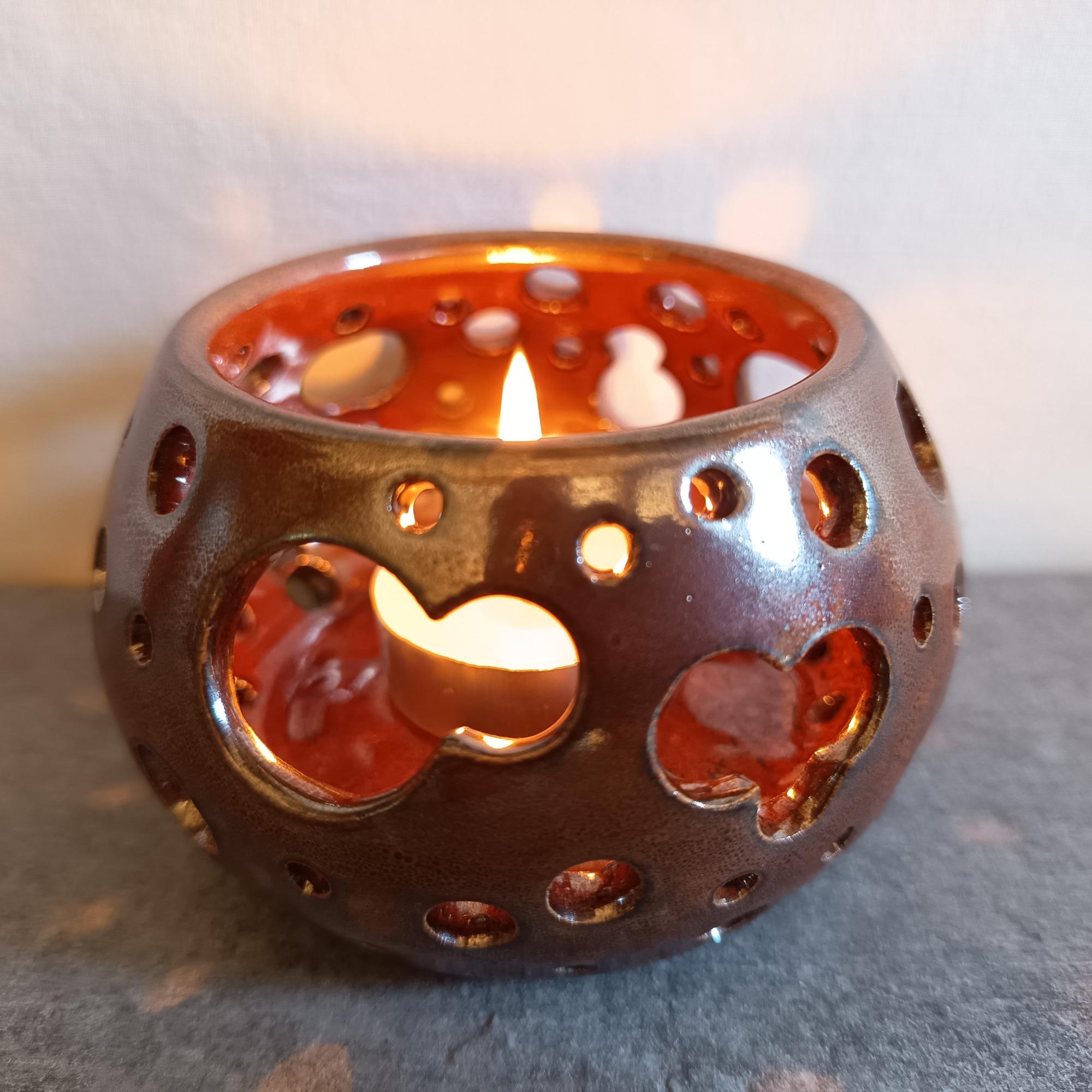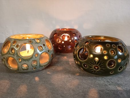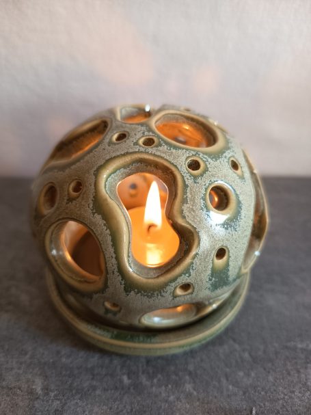 Quand la lumière traverse l'émail, elle réveille la douceur minérale des photophores.