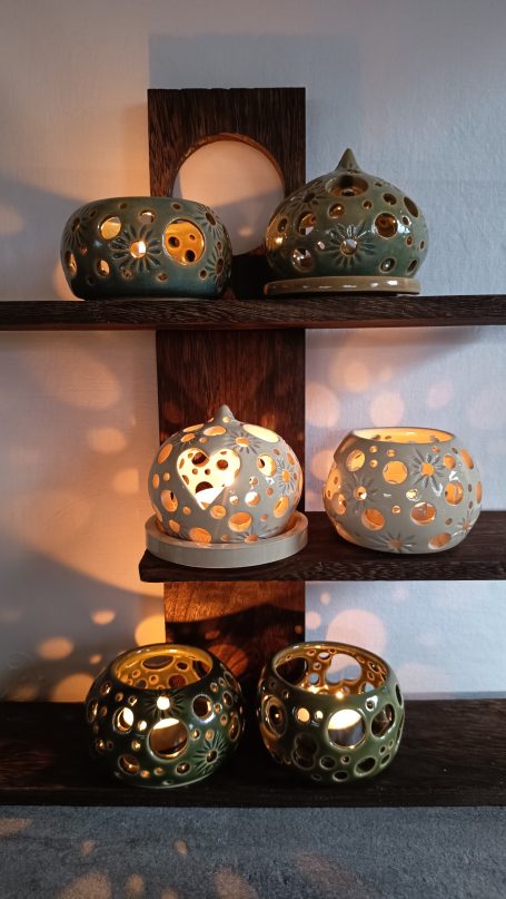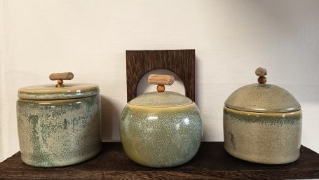 Vases, boîtes et objets précieux prennent vie sous les mains modelés dans la terre avec douceur et intention.