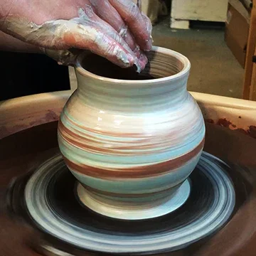 Technique traditionnelle de façonnage en céramique, particulièrement utilisée en faïence et qui consiste à mélanger différentes terres colorées pour créer des effets marbrés, striés ou veinés.